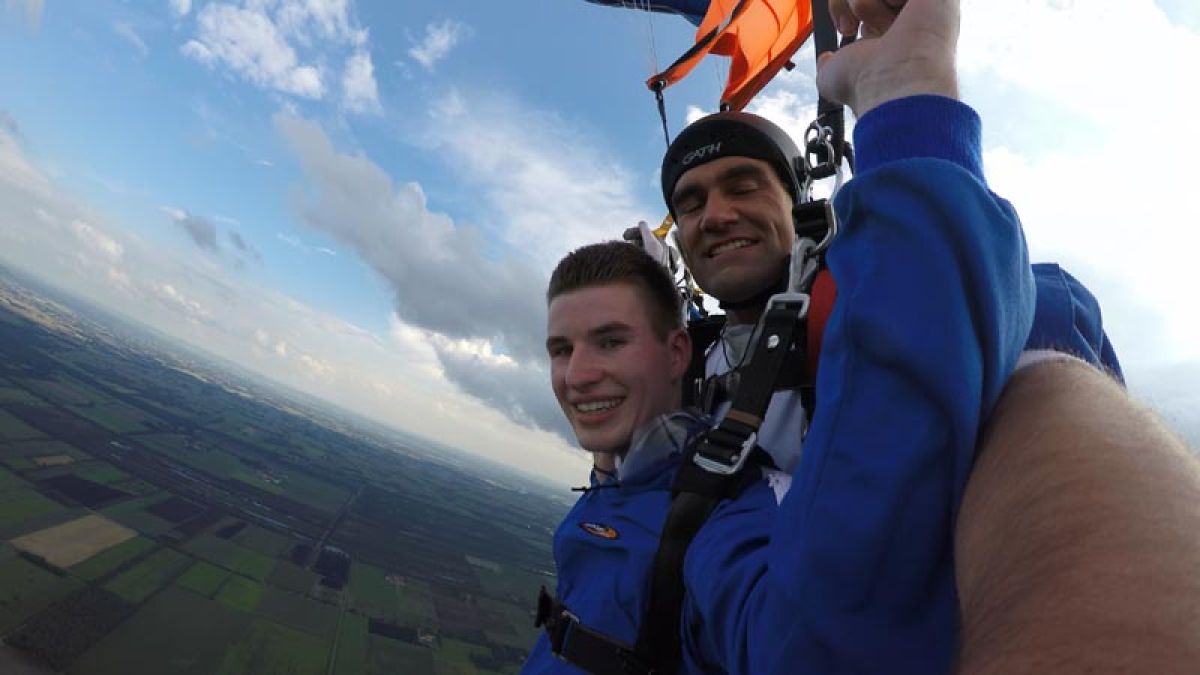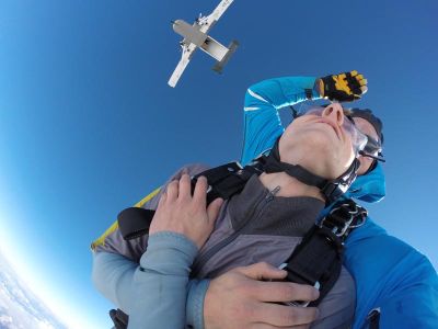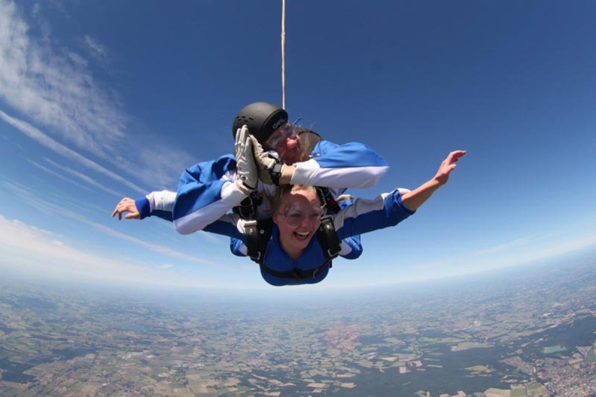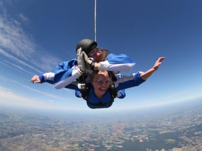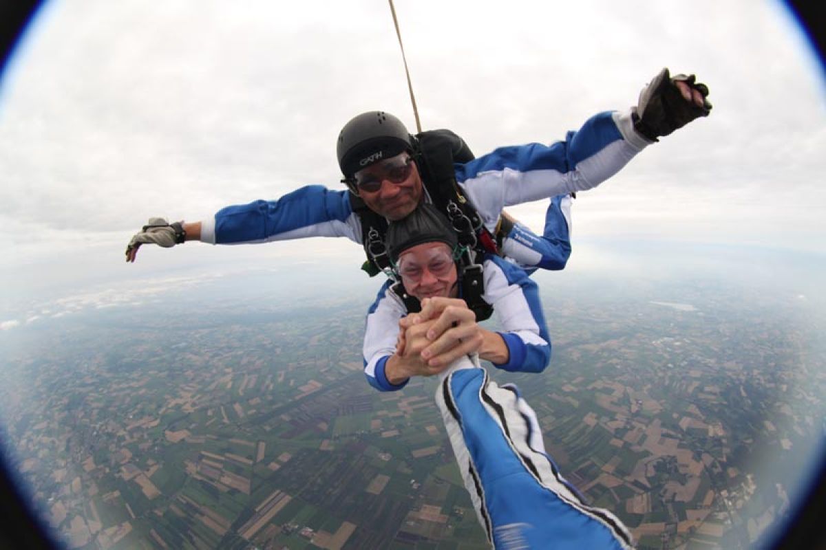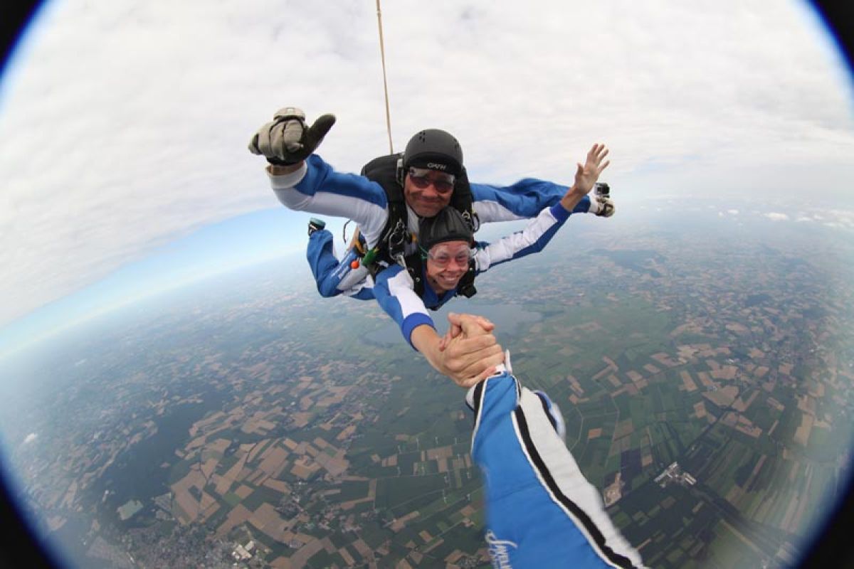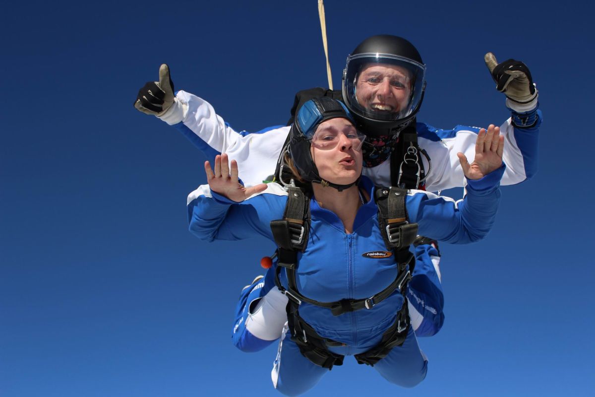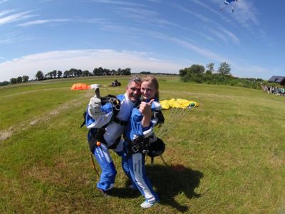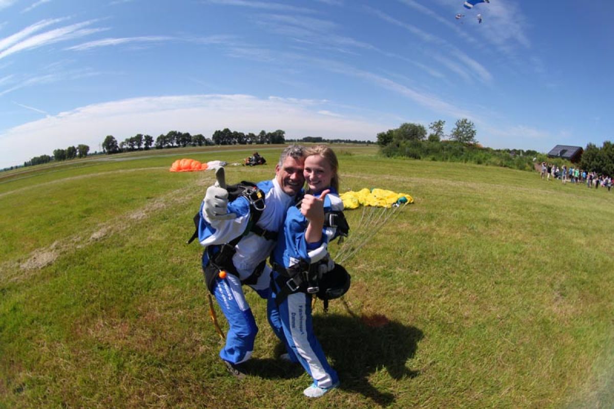 Wenn Du nicht schwerer als 90 kg (inkl. Anziehsachen) und mind. 140 cm groß bist, kannst Du bei Fallschirmsport Damme einen Tandemfallschirmsprung erleben. Solltest Du nicht diesen Idealmaßen entsprechen, nehme mit uns Kontakt auf, wir werden eine Lösung finden. Bei dem Sprung geht es um eine sportliche Herausforderung, die es nicht zu unterschätzen gilt. Deshalb musst Du ein Mindestmaß an Beweglichkeit mitbringen. Dabei geht es um Deine Sicherheit.