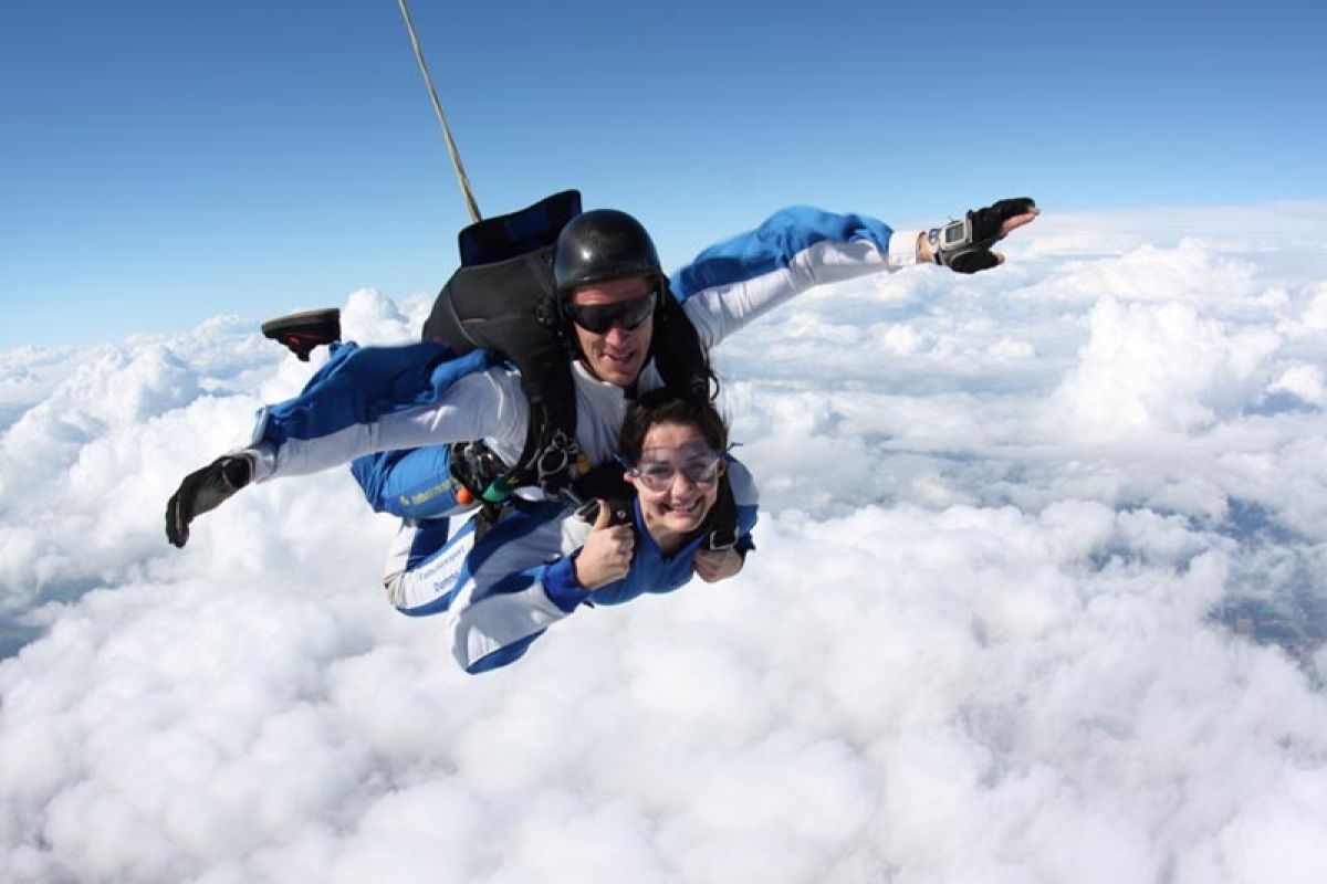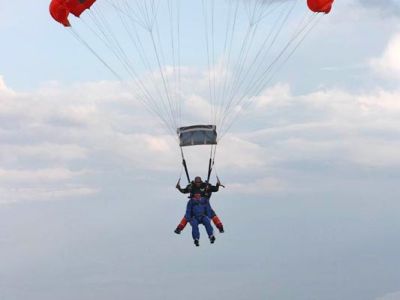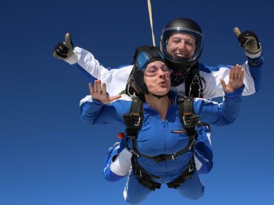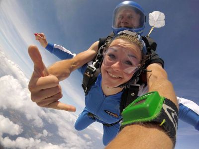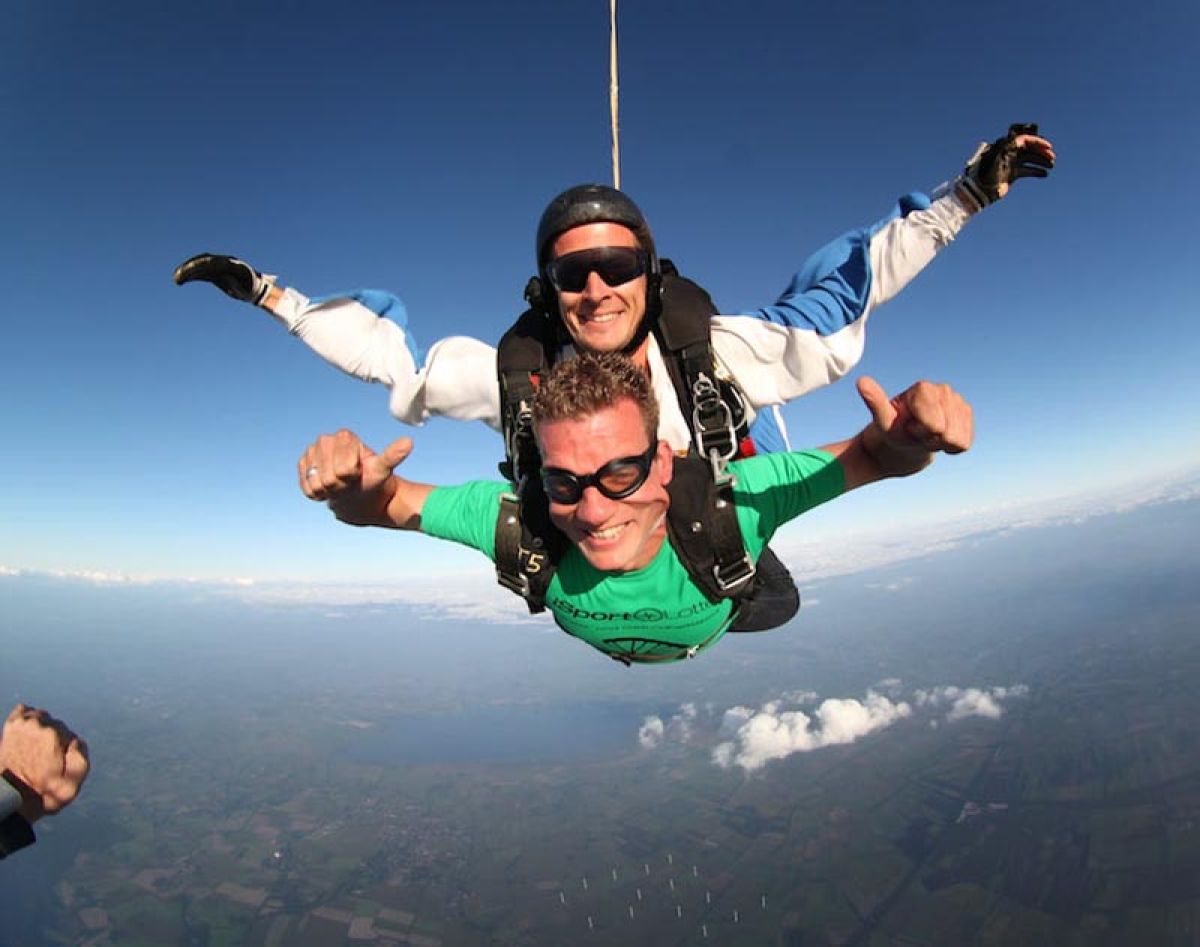 Wähle für Deinen Tandemfallschirmsprung bequeme und sportliche Kleidung aus. Auch wenn die Temperaturen am Erdboden sommerlich warm sind, könnte es oben recht kühl sein. Nimm' nicht Deine besten "Klamotten", da Deine Anziehsachen beansprucht und schmutzig werden können. Dazu trage sportliche und bequeme Schuhe, die fest zugeschnürt werden können. Bitte keine Highheels, Sandalen, FlipFlops oder ähnliches. Für den Verlust des Schuhwerks übernehmen wir keine Haftung. Auch für Gegenstände, die Du in den Hosentaschen trägst – bitte leere sie deshalb vorher aus.